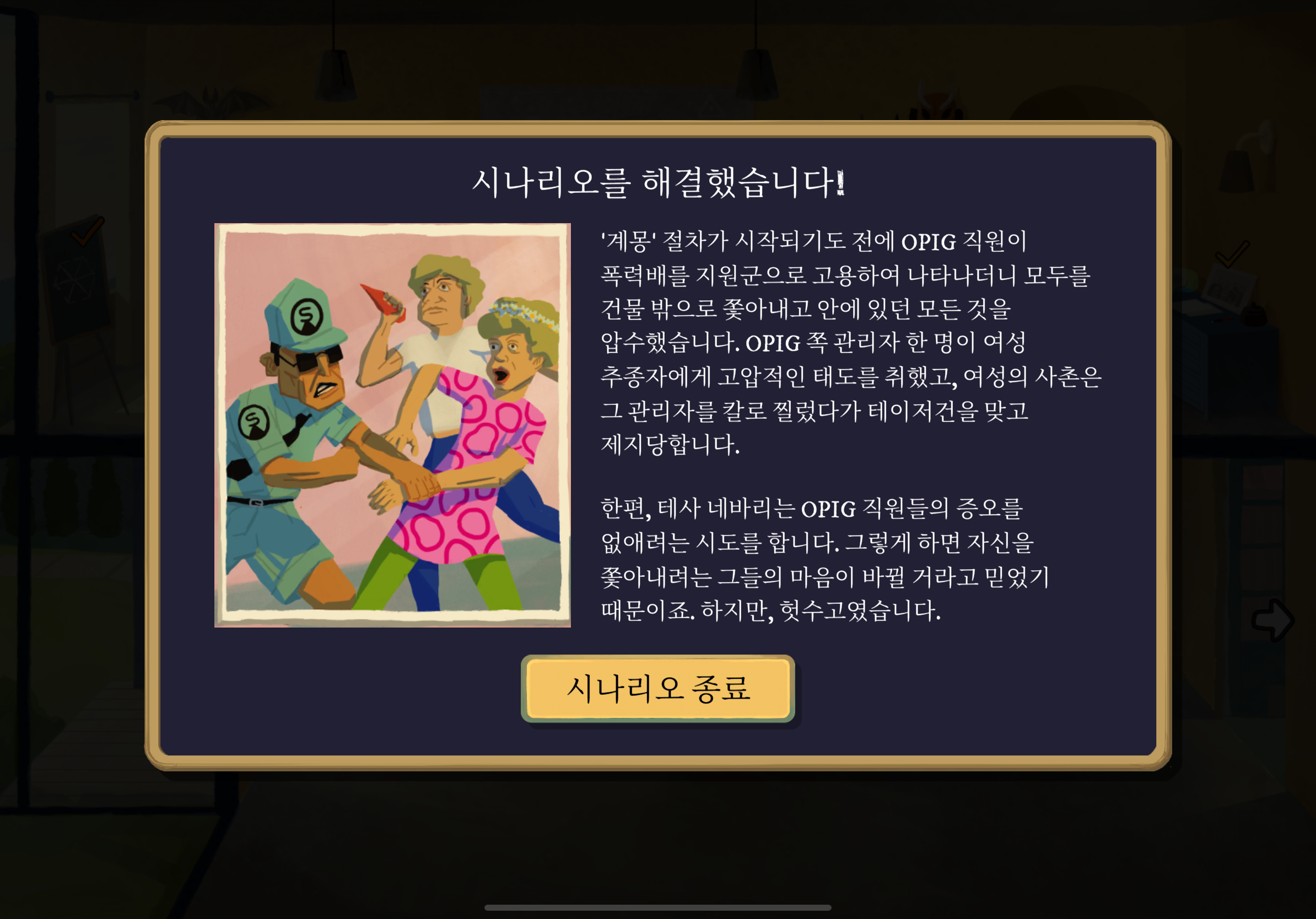 한편, 테사 네바리는 OPIG 직원들의 증오를 없애려는 시도를 합니다. 그렇게 하면 자신을 쫓아내려는 그들의 마음이 바뀔 거라고 믿었기 때문이죠. 하지만, 헛수고였습니다.