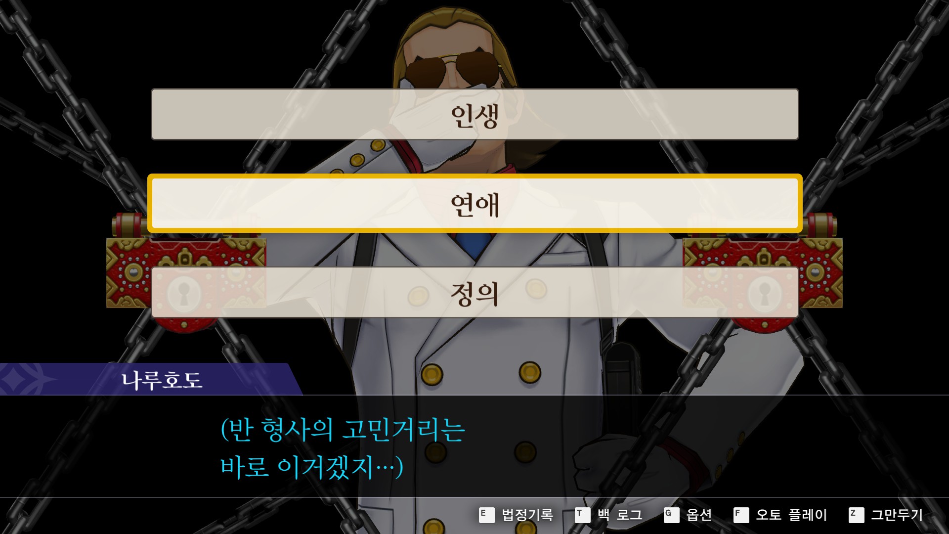 역전재판5 4화에서 반 형사의 사이코 콝 해제 시 '연애'를 선택한다