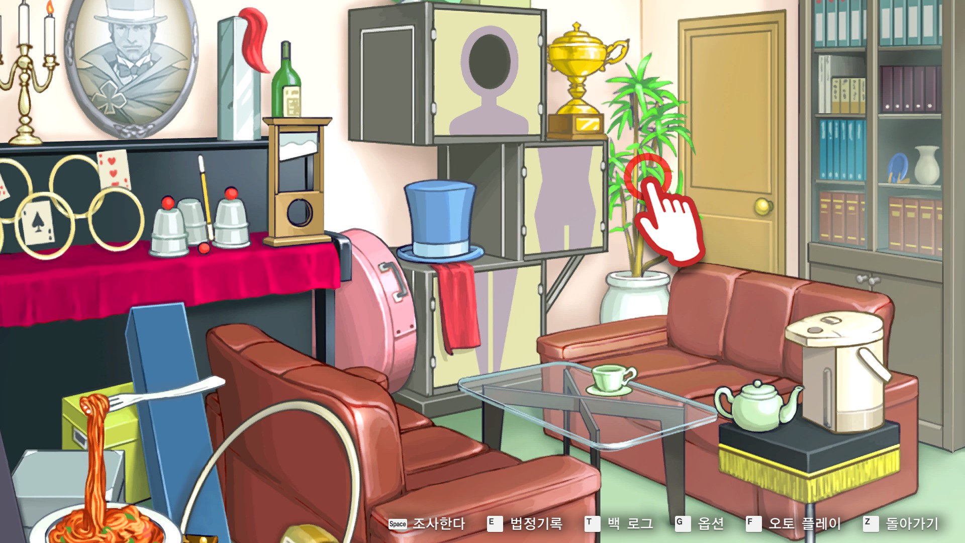 7. 역전재판6 > 제5화 > 탐정 1일차 시작 챕터로 이동해 관엽식물을 조사합니다.