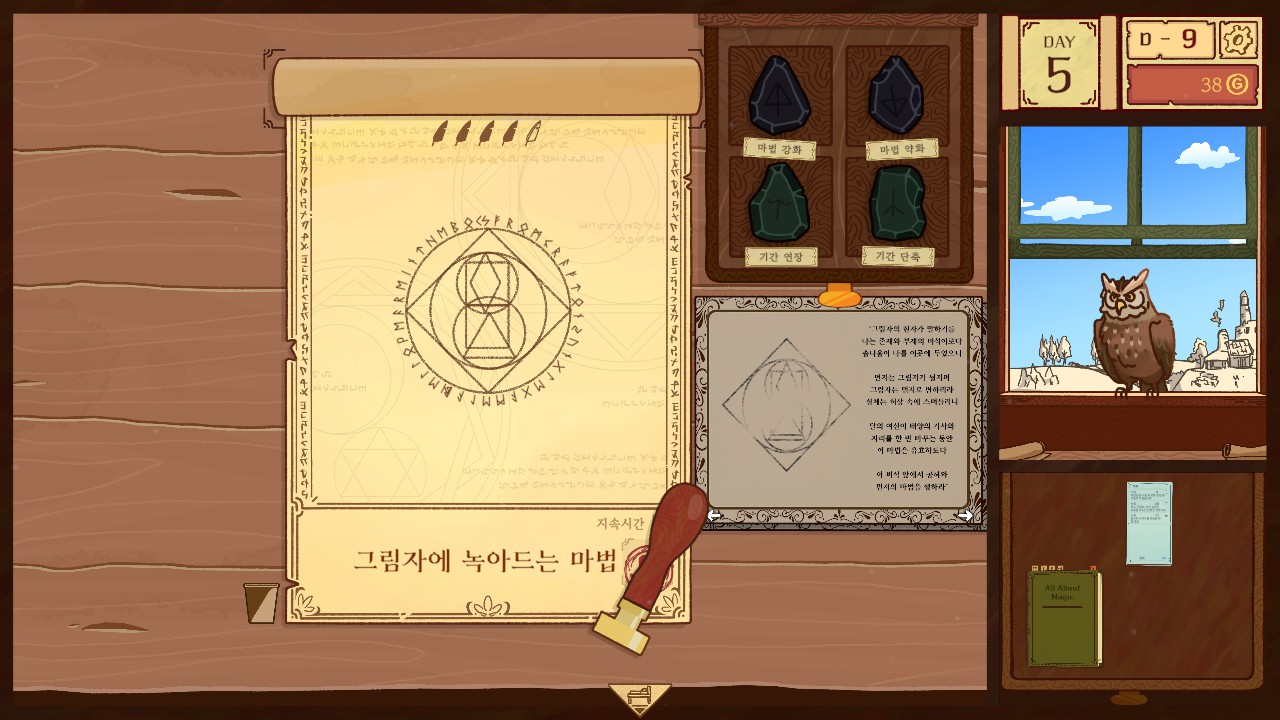 📌해답: ((공기+땅)+(불+땅))+마법 강화 2회=그림자에 녹아드는 마법