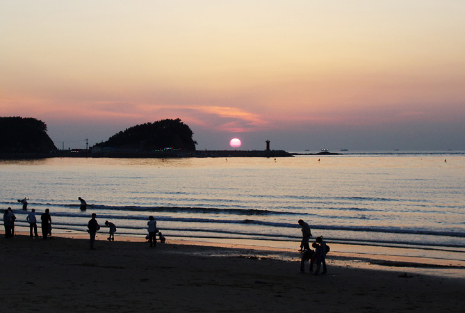 당진 왜목마을 해수욕장 "일몰과 일출을 동시에"
