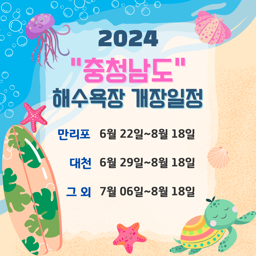 올해 해수욕장 개장 중 충남의 해수욕장 개장 일정을 알아볼까 합니다. 충남 서해에는 대표적으로 안면도 백사장항이나 꽃지 해수욕장, 그리고 만리포, 대천 등이 유명한데요. 올해는 언제부터 개장할지 확인하고 휴가 계획을 짜보도록 하시지요. 다만, 일정이나 입수시간은 현장에 상황에 따라 변경될 수도 있으니 휴가 계획을 세우실 때 참고바랍니다.