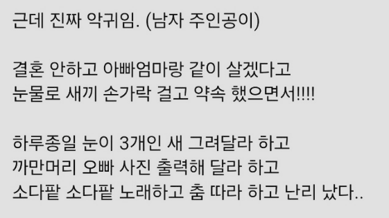 티니핑이 어린 소녀들에게 무시무시한 영향력을 끼치고 있다는 건 다들 알고 계실 겁니다. 조금씩 어린 소녀들이 헌트릭스와 사자보이즈에게 빠지고 있다는 소식이 들려오고 있습니다. 요즘은 저학년 초등학생이나 미취학 아이들도 충분히 아이돌 음악을 듣고 좋아하고 있죠. 그러다 보니 한 번 좋아하게 되면 N차 관람은 당연하고, 머리도 주인공 루미 따라 땋기도 하고, 부모에게 사자보이즈 사진 출력해 달라고 하고, 해외의 경우 이미 다음 핼러윈 복장이 정해졌다는 등의 이야기가 들려오고 있습니다. 주인공 루미의 서사가 마치 엘사처럼 자신의 약점을 극복하고 성장하는 이야기이다 보니, 노래 Golden이 Let it go 같은 감동을 준다는 의견도 있습니다. 하지만 노래가 Let it go 보다는 어렵고 키도 높으니 어린이들이 부르긴 많이 어려울지도 모르겠네요.